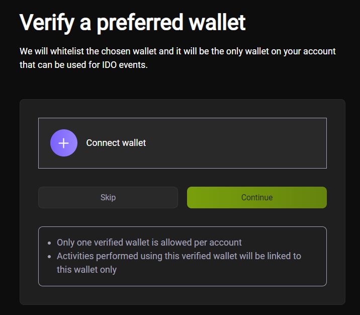 3\. Once connected, click on ‘Continue’, then ‘Verify Wallet’.
